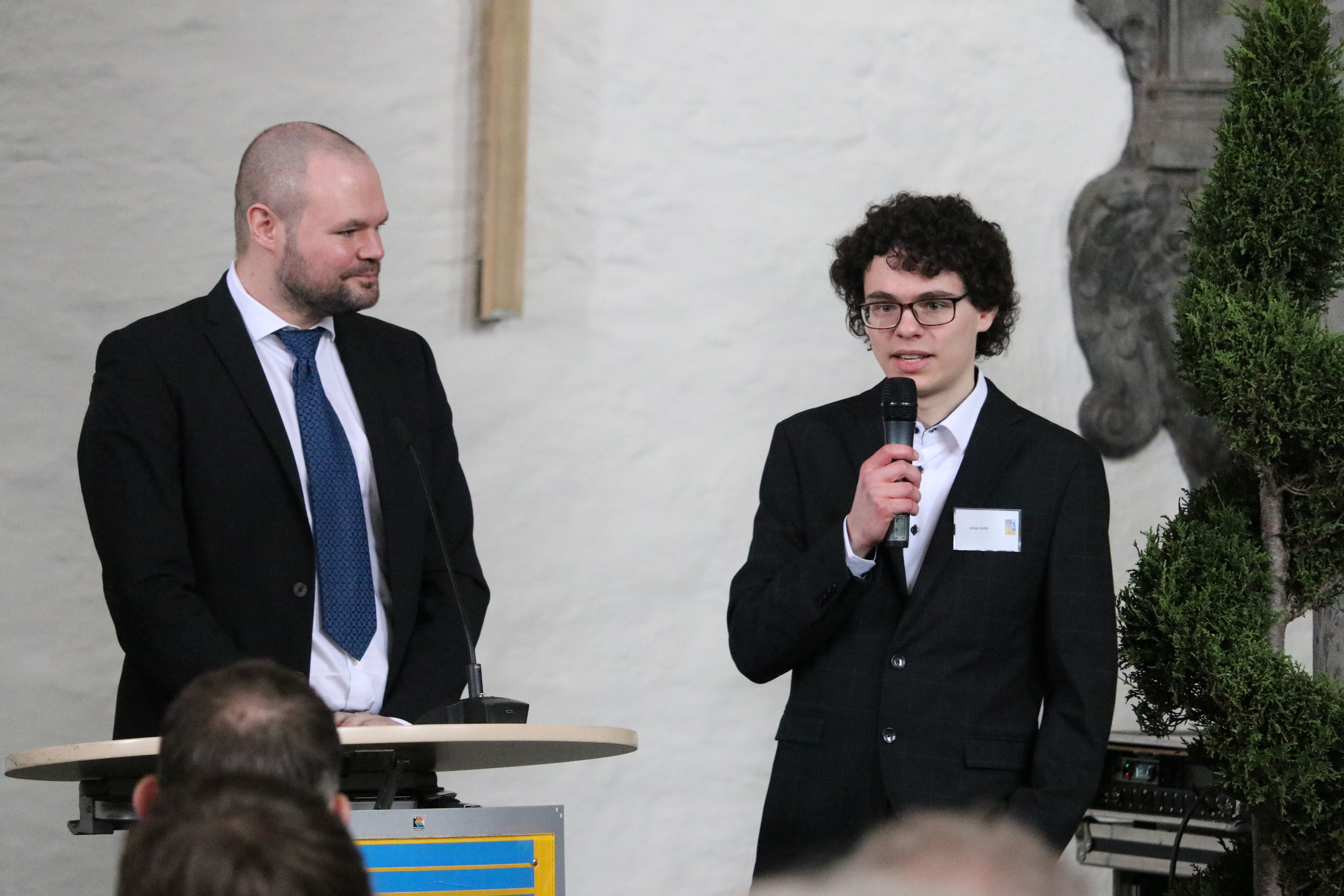 Linus Voltz von der CJD Christophorusschule Königswinter hielt einen Vortrag zum Thema "Gibt es den freien Willen wirklich? Lukrez’ Ideen in seinem Werk De Rerum Natura". Niklas Schneider vom Sankt Joseph-Gymnasium Rheinbach präsentierte eine Erörterung mit dem Thema "Dignitas (Menschenwürde) nach Cicero – heute Ideal oder real?" Beide wurden für Ihre Leistungen mit der Aufnahme in die Studienstiftung des deutschen Volkes e.V. belohnt. Wir wünschen eine spannende Lektüre.